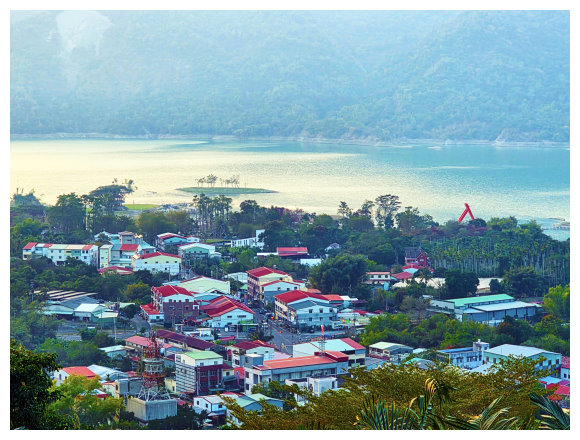 情人公園:從大埔SEVEN右側公路進入即達,園內巨粗高大整齊的麵包樹群,頗為壯觀。情人公園設有遊潭碼頭,是高水位時方能使用(低水位時使用湖濱公園的碼頭遊湖),園區內還留存蔣介石雕像一座,很難得。