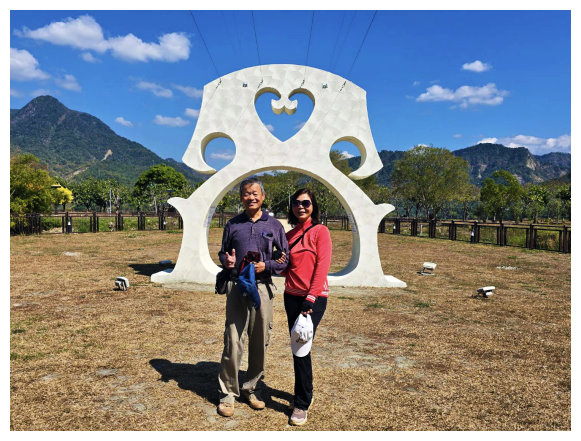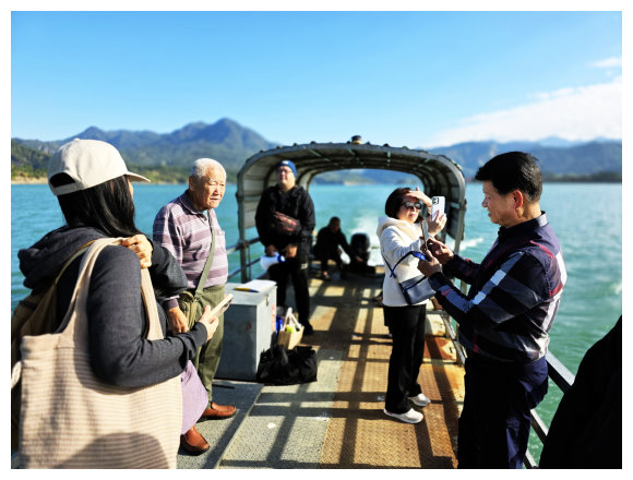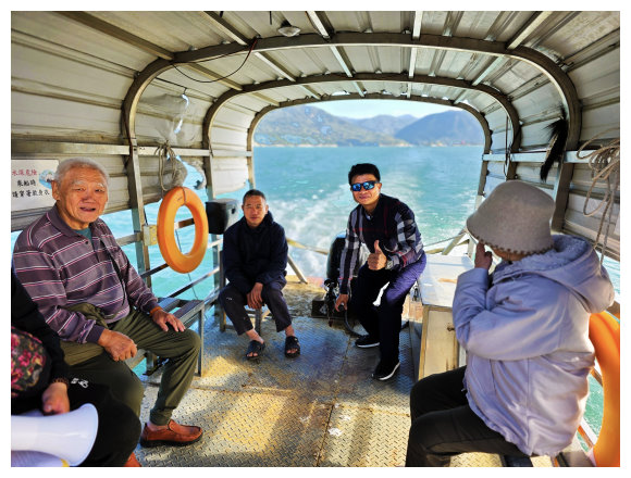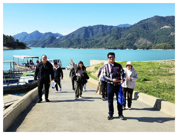 黃俊豪校長輪調大埔國中時與校長賢伉儷船遊大埔水庫拍照