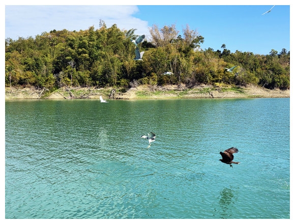 釣上來的小魚就賞老鷹及其他鳥類搶食了。
