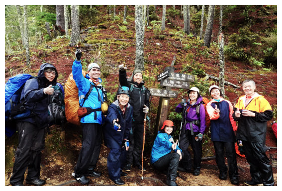 14:30 恊作報到會合,晚餐後夜宿,恊作又與管理單位派來整修步道的六人小組酗酒。