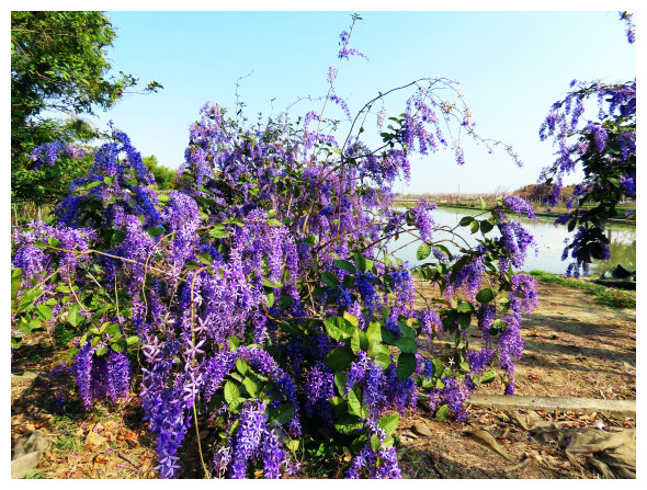石斛蘭景觀:位在汴頭里洪氏溪州部落的赤中寺附近(導航設定赤中寺即可),穿越國三高速公路涵洞就可看見指標,該部落是典型的農業部落,巷弄狹小會車不易,最好把車子停在洪厝溪洲河堤車道比較不會塞車,步行到石斛蘭觀賞區不到5分鐘,屋主從台鹽退休後投入蘭花種植並將天宮石斛蘭拿回家寄生在家中的 一棵老龍眼樹上,現在因長達160公分而暴紅,宮石斛又名垂枝石斛蘭、「瀑布蘭」、「倒吊蘭」;常因為多株栽種一起,花期時同步開花,盛開時千餘朵群花爭豔傾瀉而下,易形成花瀑景象,另得名「瀑布蘭」;花期每年在四月下旬至五月上旬,長達一個月的假日,總讓該部落人滿為患,大概等到110年 全部圍牆的石斛蘭全部長成開花後,這裡就會變成一個觀光景點了。