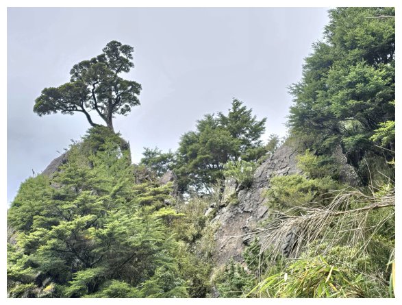 S型石階陡上坡10分鐘見到漂亮的國畫景就是平緩的峭壁鐡鍊拉繩段+鐡樹林段