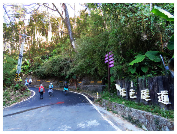 08:40 過圓潭生態園區上抵瑞里一品茶業民宿前的停車場,設有公用洗手間,欣賞鞋蘭,10分鐘後順綠色隧道方向緩上。
