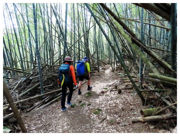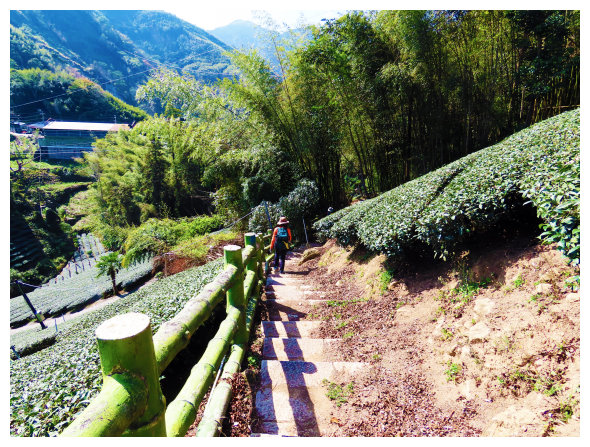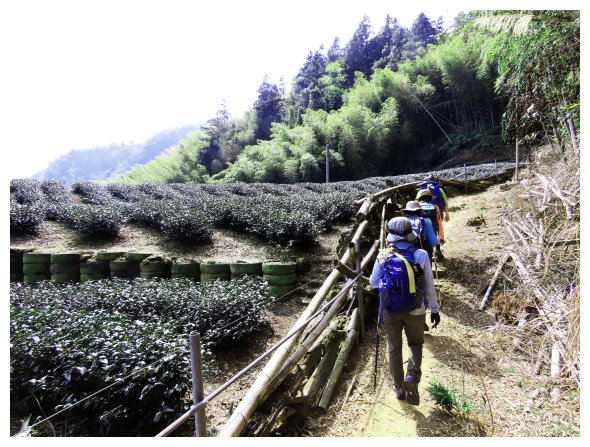 09:37 竹林步道高點小下到工寮,順漂亮的茶園步道下。