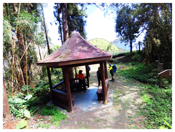 10:00 上到愛玉亭,今天沒口福,小休後續上,10分鐘後過茶園再進竹林。