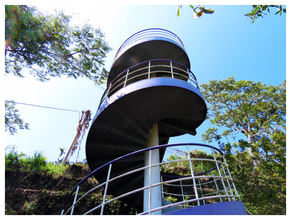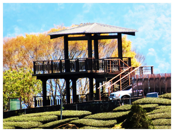 12:02 上到風埕觀日峰,建有休憩亭,可賞太陽從塔山上昇的日出,小休後順車道下,除了漂亮茶園景觀外,也可看到神秘的小塔山。