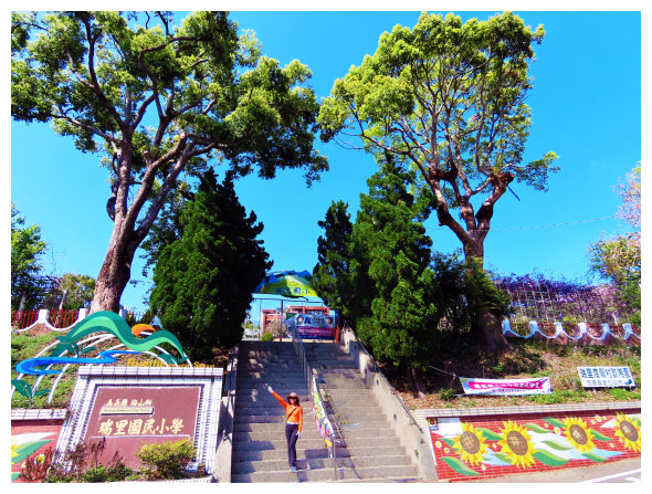 09:47 瑞里公車站牌,有商家,也是瑞太古道的登山口,拍團照後進登山口牌樓緩上的階梯步道行。