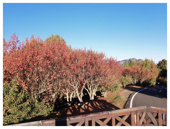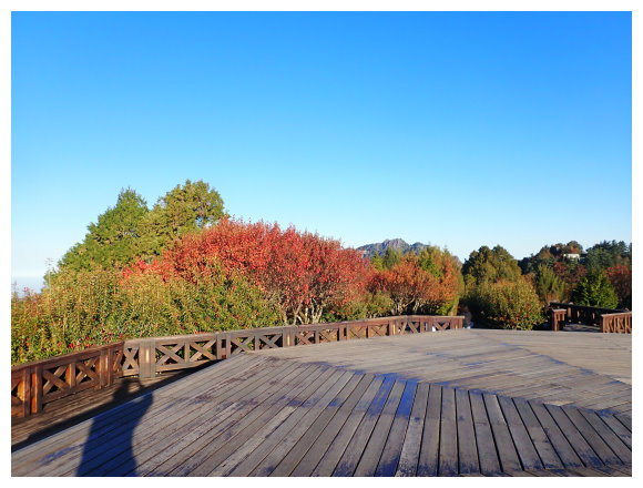 07:00 小笠原山八卦觀景台,此時節來可看到整排的紅楓,也可看到玉山諸峰。把玩60分鐘後原路下山。