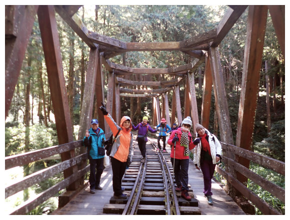 11:00 水山巨木,休息賞景吸巨木芬多精20分鐘後下木框形成的造形橋到水山火車站。