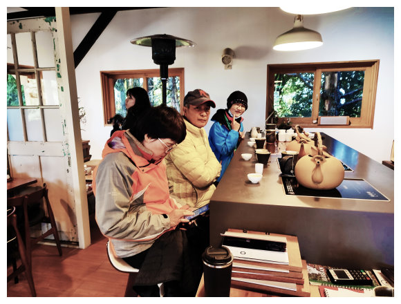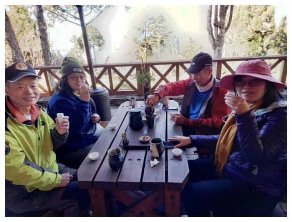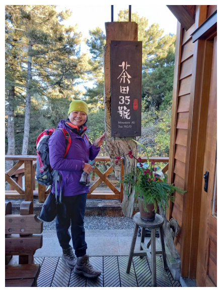 08:05 阿里山植物園(茶田35號),是一棟二層樓木建築,一樓經常展示各項展覽品,二樓提供茶飲及簡易茶食(早餐),更有提供總統府及外交部指定專用的高山烏龍茶及紅茶。 老闆娘更精通英、日語,是頂級的阿里山導覽員,屋外擺有木桌椅供遊客品茶賞景及看不怕人的野生動物。早餐休息賞景二小時後回祝山觀日台順車路下山。
