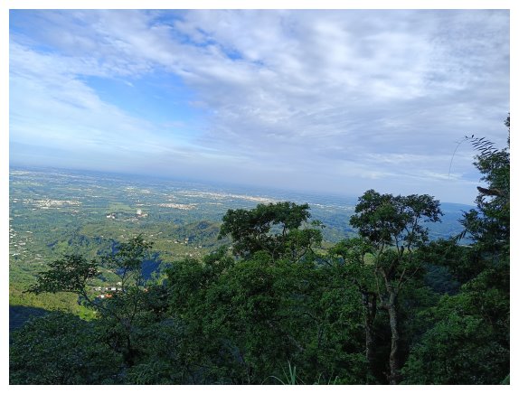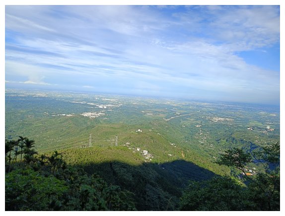 07:35 緩陡上的4-2步道比4-1號步道長,中間偶兒也會設有休息椅及觀景台,今天的天氣很好,可下瞰雲林的湖山水庫(約1k哩程柱處)。