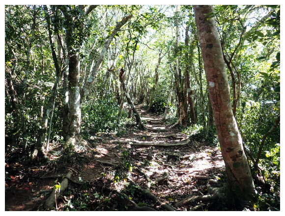 07:17 登山口牌樓,小段登山階梯後就是一路緩上的土質步道。