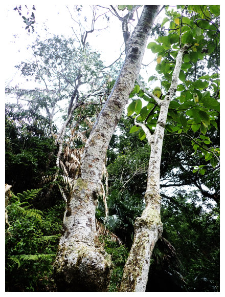 13:09 下到七里香步道岔路口,取右下七里香步道,小行即見到一棵咬人狗樹,樹皮上有白痕不能碰,否則就像會有像被咬人貓咬的疼痛。