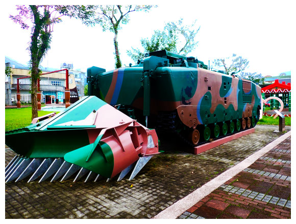 16:30 花蓮縣吉安鄉民宿報到後,賞遊吉安鄉市區街景,吉安鄉的農會建築比公所還雄偉,希望公園內有台全國最大的登陸工兵車(俗稱大鋼牙),LVTP5-E1長12.1公尺、寛3.9公尺、高3.3公尺、重6.7公噸,外型霸氣搶眼,主要用於搶灘掃雷用。