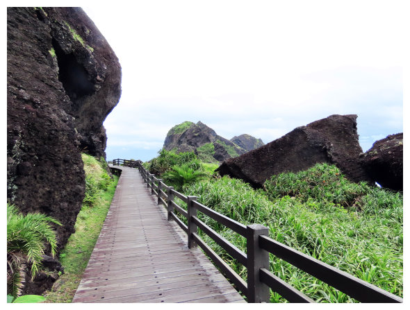 10:50 賞遊三仙台風景區。過跨海步橋,走步棧步道到觀景涼亭100公尺前左下步徑約30公尺的岔路左小行即見三仙台一等點,回木棧道賞遊第一座山後即回程續走台11線北上。