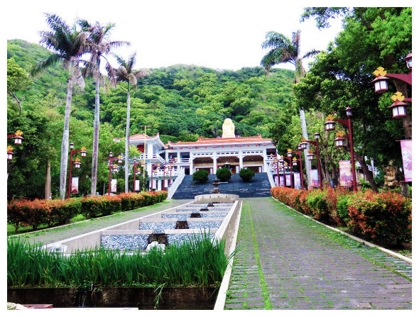 15:00 賞遊花蓮縣壽豐鄉鹽寮村的月崖灣親子農場及一旁的和南寺半小時(台11線5K)。
