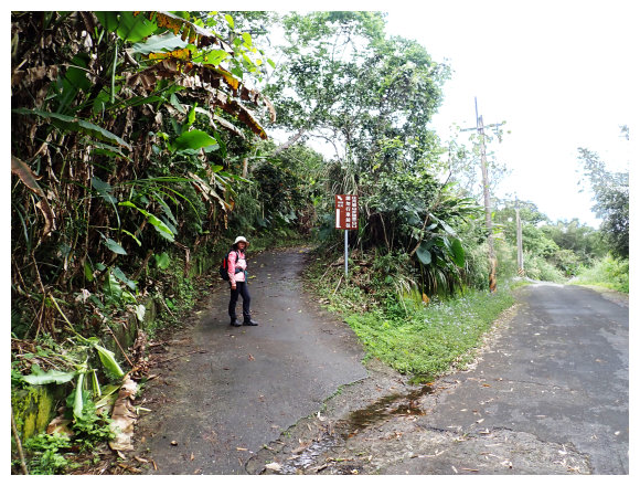 08:11 上至華林園巨石處停車場也是水泥車道終點,<大山支176>電力桿,這是一貫道教徒修身處所,要淨音,取巨石右側土石步道緩上。