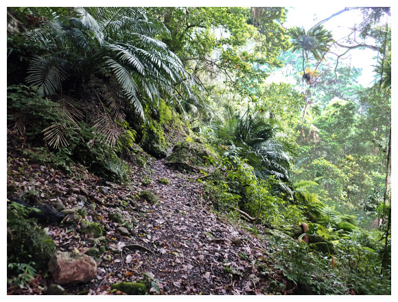12:56 上到猴群出没處,過一座涼亭就是好漢坡圍欄處(再上去的步道已損),小休後原路回程。