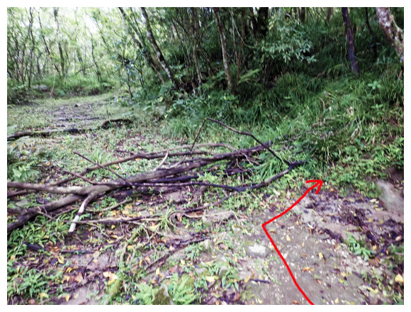 09:50 大產業道路有山友放的倒木阻擋,取右側步道緩上。