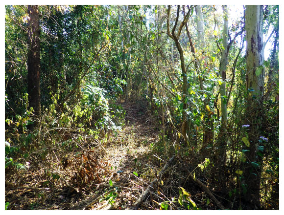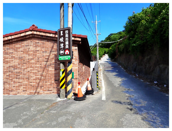 09:15 續行約100公尺 的三叉路口,取左進入約500公尺的路旁三叉路口較寬處停車,左側有<請勿左轉進入/此路不通>警告牌及<台南市740800>路灯,續行斗六山暫不取。