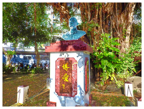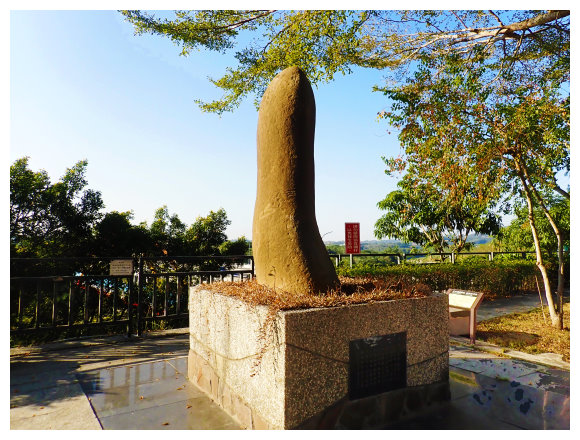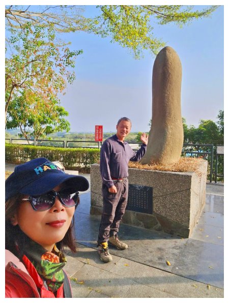08:42 自玉井消防局與玉井警分局間的路上進入賞賞天筆,基座下方有碑說明此「鎮局之寶」的由來,據說摸了它,上天就會賜予孩子呢,更難得的是一旁還有一座國父孫中山先生的銅像。