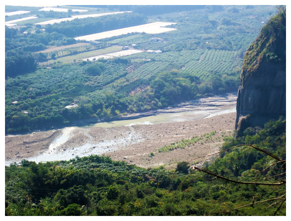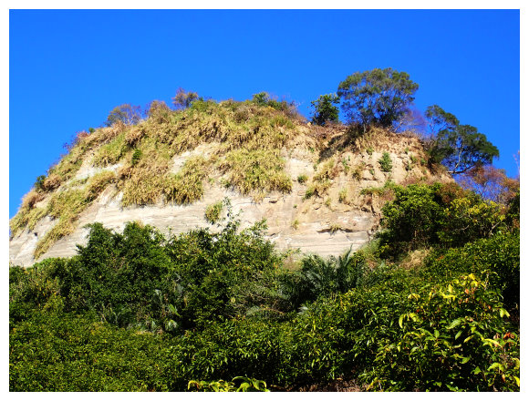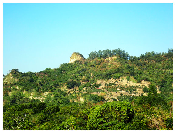 09:10 續行到加油站左取台3線到373K處左進南189線,到1K處的中正橋上可見左側藍鳥山指標,亦可見藍鳥山頂尖聳而凸顯的岩壁。
