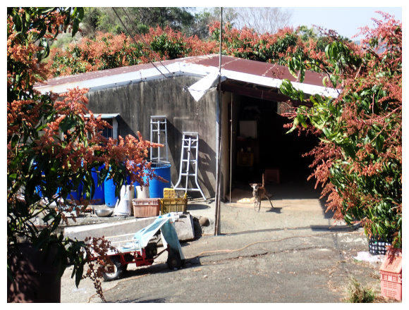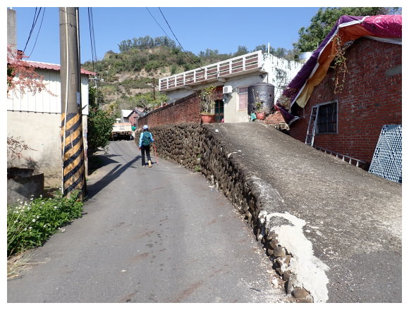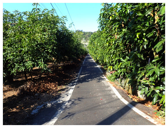 09:30 步行取左進入村落住宅區。3分鐘抵三叉路口取左小行3公尺即取右走一車寬度的芒果林產業道路(三叉路口左側民宅偶遇賣超大的棗子/玉井區中正114-2號民宅)。