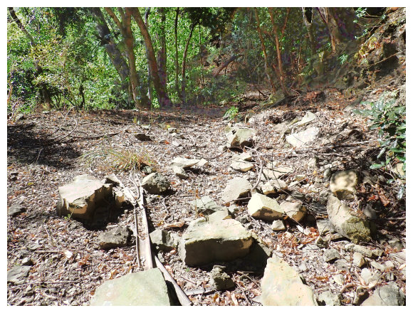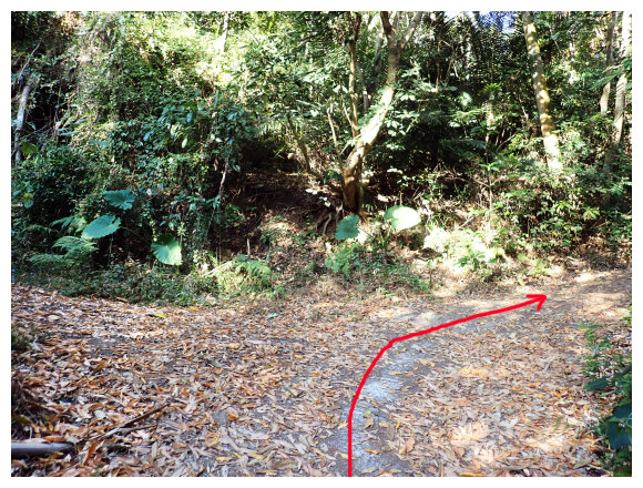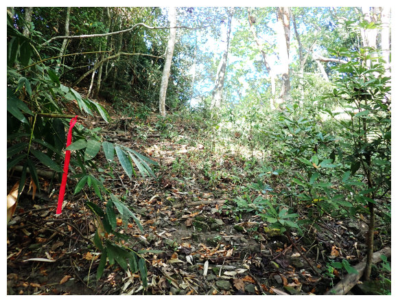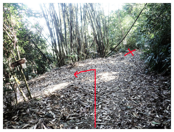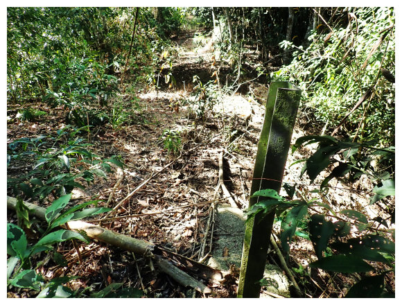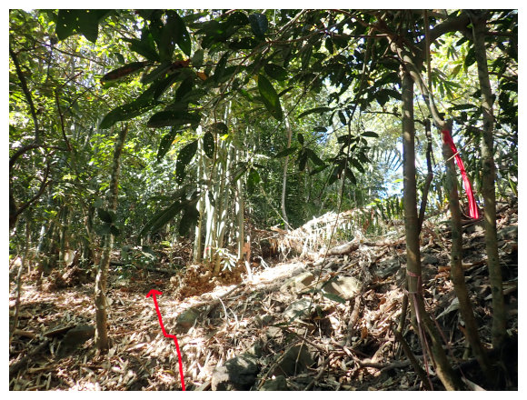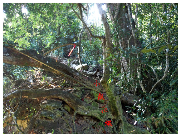 11:13 左崩坍地,有小拉繩上岩石路徑不取,取右綁上布條,旋上接回步道。