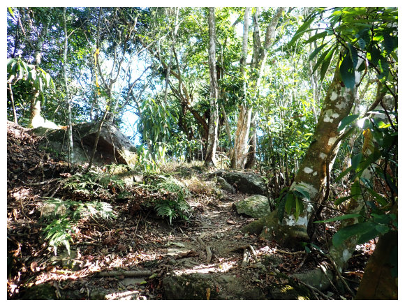 10:44 危險陡坡,岩石山徑,亦須留心。不久可見前方稜線上種植檳榔樹,即為淑女峰。