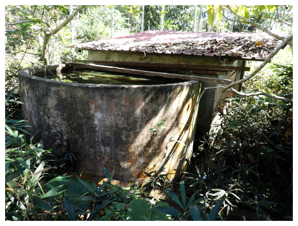 11:43 廢棄檳榔園工寮,後方連接有水泥蓄水池,通過包籜箭竹區再往左接上稜線高點,順路條續行下切。