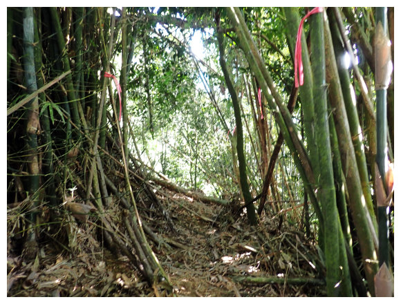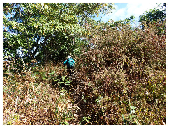 09:38 上稜取左順稜線上的大岩石塊、雜木林、刺竹叢而行。
