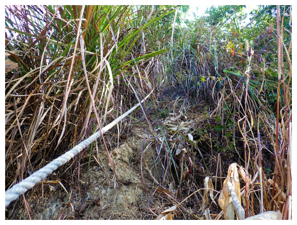 10:40 拉繩上稜,可看到下方的曾文溪,在草雜的稜線小上下而行。