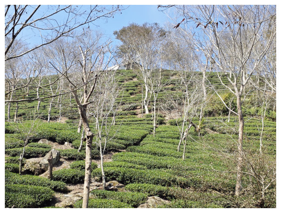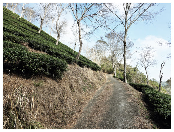 12:28 見到漂亮的茶園小下就是 最後農宅(楠西區香蕉山31-23),主人姓賴、女主人來自嘉義縣的竹崎鄉,待人親切,可提供最後的水源,也兼賣時令水果。農宅左側大岩石設有「石關長」守護山林的山神, 滿山坡盛開的梅花讓人留連,小休後順產業道路續下。