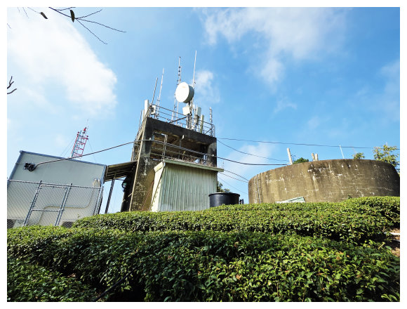 09:52 登頂竹子尖山。基點 就在氣象站旁,小下鐡皮房子休息20分鐘 賞楠栖市景及右側的大凍山景(山友設有簡易洗手間),退回稜線路, 再順原路往福德祠方向續行。