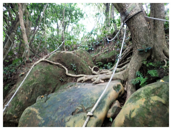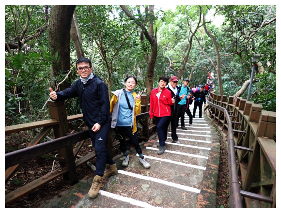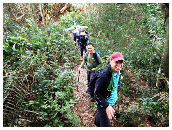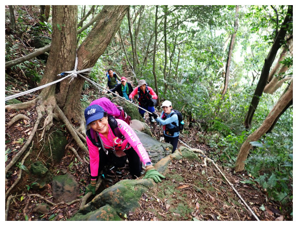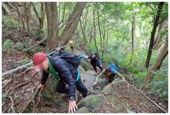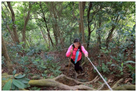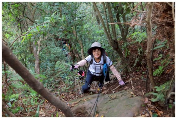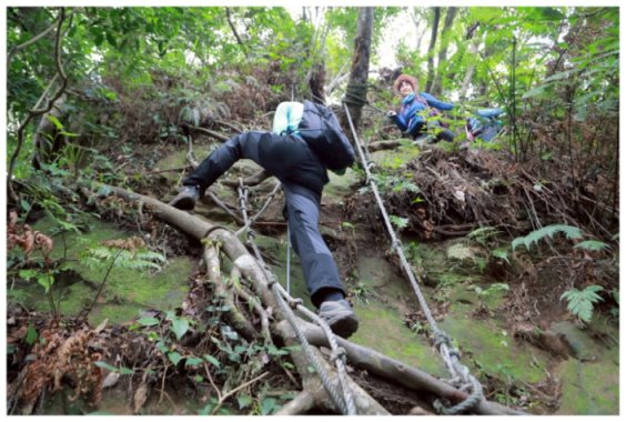 11:05 數段拉繩上抵金面山,可下瞰鴻禧山莊、高爾夫球場、金山面山、茄苳坑山區及遠眺大溪市區,團照後原路回程。