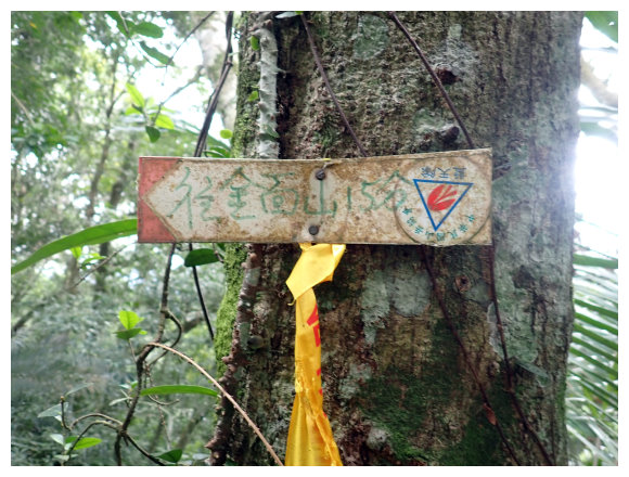 金面山:海拔667M,小百岳#021,山頂有顆二等三角點#1056。位於桃園縣大溪鎮美華里,因山形像鳥嘴,又稱鳥嘴尖山,為大溪八景之一,山頂除半路有座平台可以俯瞰大溪源禧山莊及大溪高爾夫球場外,因樹枝過盛,展望並不佳,行程雖大多於稜線上行走,但小上小下數個山頭,部份區域還得靠繩索、樹根攀爬,小有難度,單峰可看度1.4分,難度1.8分。