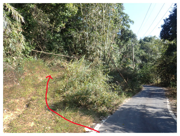 小行三分鐘遇三叉路口取左續上(有步條)。