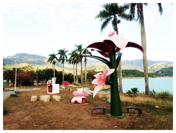 情人公園:從大埔SEVEN右側公路進入即達,園內巨粗高大整齊的麵包樹群,頗為壯觀。情人公園設有遊潭碼頭,是高水位時方能使用(低水位時使用湖濱公園的碼頭遊湖),園區內還留存蔣介石雕像一座,很難得。