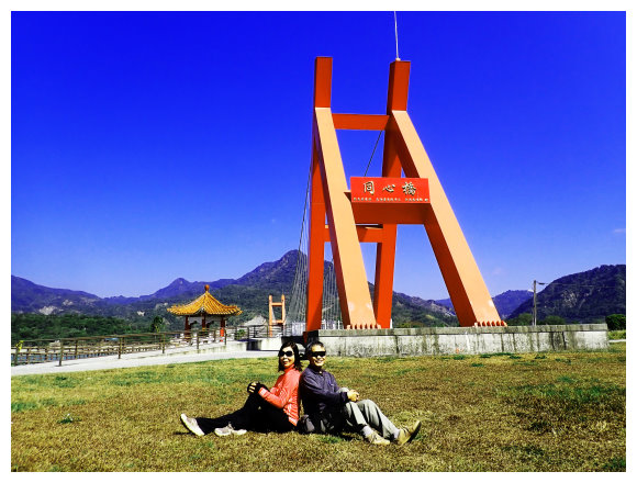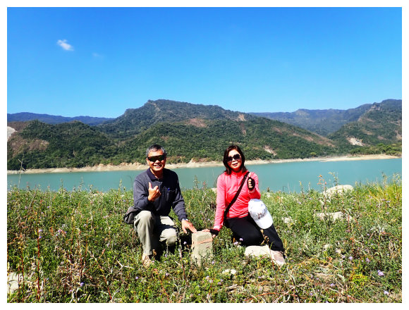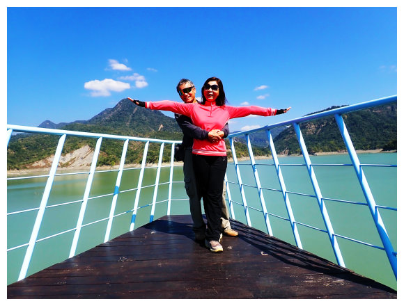 黃俊豪校長輪調大埔國中時與校長賢伉儷船遊大埔水庫拍照