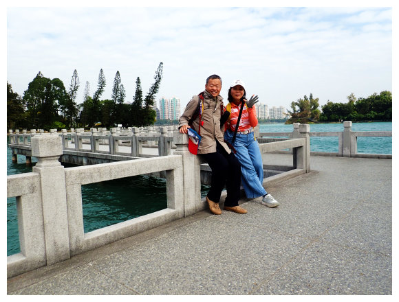 九曲橋:仿上海城隍廟中九曲橋之形式,橋長230公尺,寬2.5公尺,橋下支柱共72支。四周游魚群群,間雜有戲水之離群支禽,猶如置身畫中。