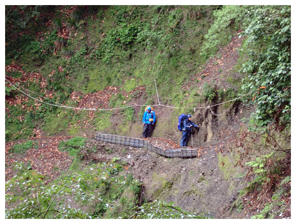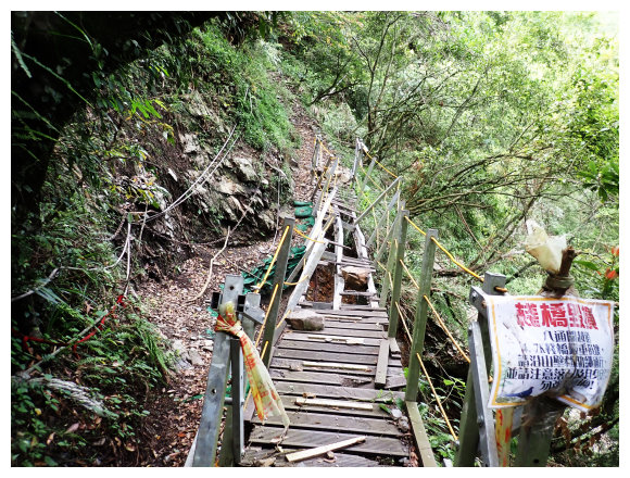 09:00 遇已毀鋼管橋,取左側臨時步道拉繩通過。