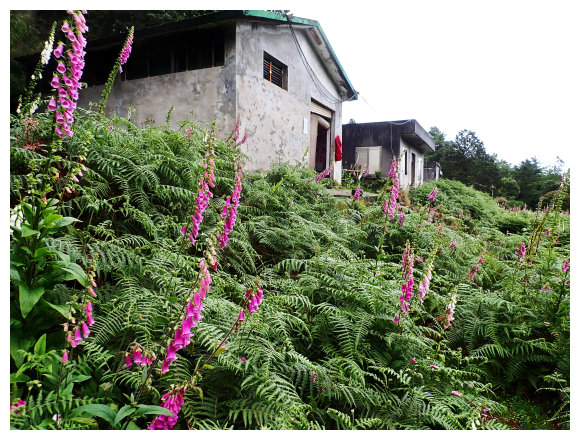 五月份的山屋前長滿了毛地黃