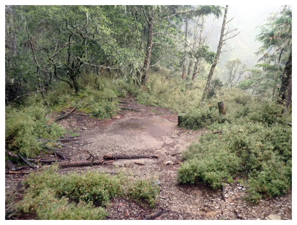 05:50 高繞三叉路口(直行的舊路有阻絕條),左上高繞新路(直行舊路約15分鐘可抵瀑布,是夜宿關高營地時的最佳取水處),取左開始上坡高繞。