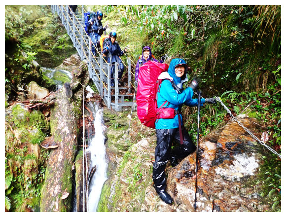 10:07 乙女瀑布(約6.6K)。過鐡橋午餐休息40分鐘續行。過後多處小坍方均要小心通行。