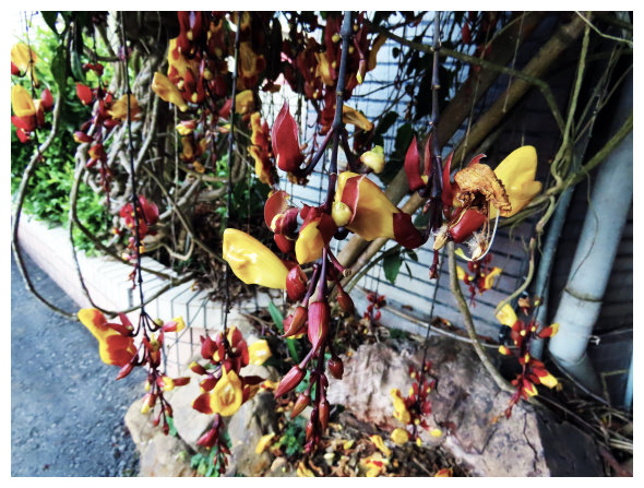08:40 過圓潭生態園區上抵瑞里一品茶業民宿前的停車場,設有公用洗手間,欣賞鞋蘭,10分鐘後順綠色隧道方向緩上。