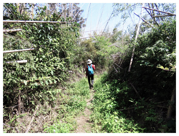 09:37 竹林步道高點小下到工寮,順漂亮的茶園步道下。