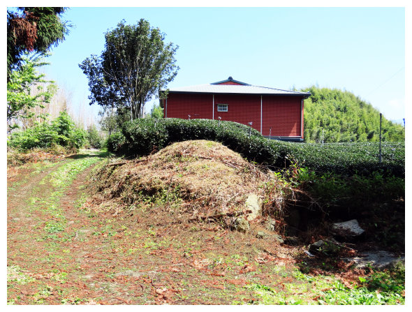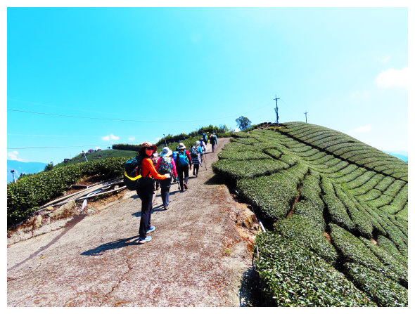 12:02 上到風埕觀日峰,建有休憩亭,可賞太陽從塔山上昇的日出,小休後順車道下,除了漂亮茶園景觀外,也可看到神秘的小塔山。