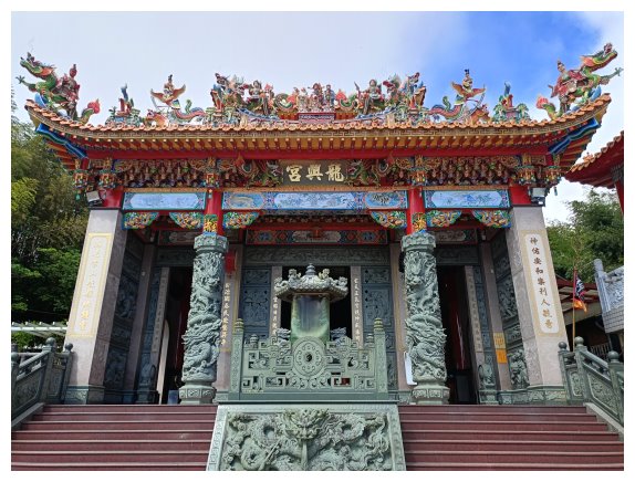 09:45 抵龍興宮(奉祠玄天上帝)。上方的涼亭,販賣有愛玉冰等冷飲,取愛玉冰擹前的梅圳古道梯道急下大眾爺廟,有<大眾爺廟1.5K>哩程指示牌。