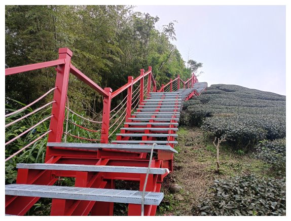 07:15 上接有反光鏡的產業道路,取右續上不久即再接4-2步道緩陡上的階梯道。