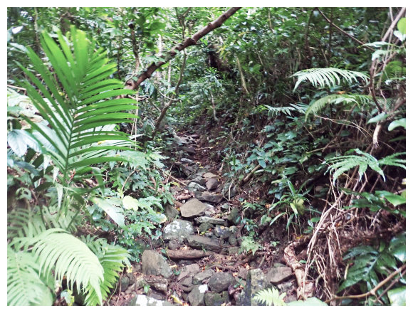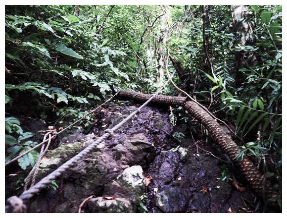 06:42 左轉處的溪澗,小段拉繩順溪澗緩陡上後續順溪澗石頭路緩上。